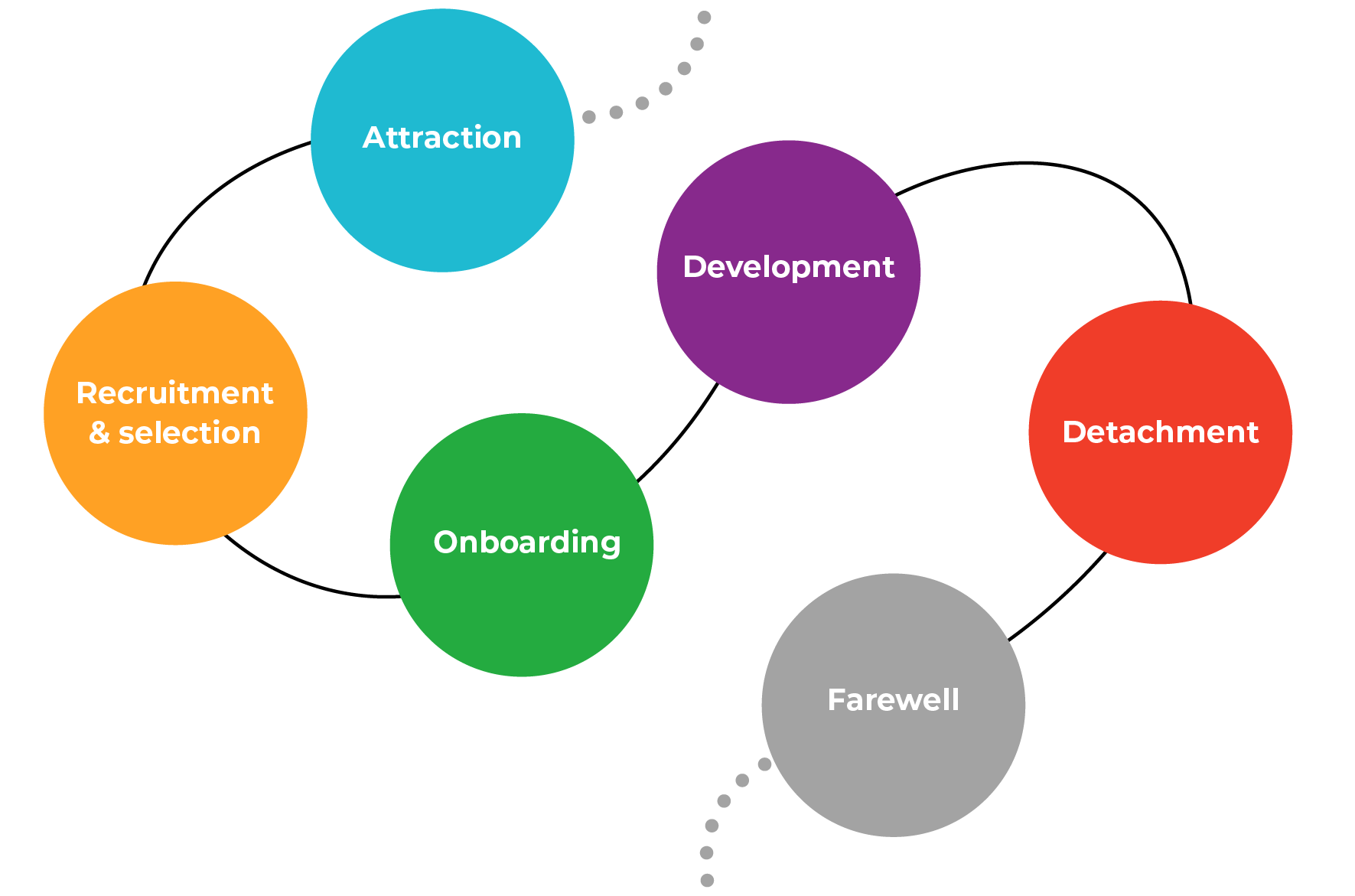 The employee life cycle shows the (mental) stages an employee goes through in their contact with an employer, from initial introduction to departure from the organization. Using motivators, you can establish better contact with the employee at every stage and better align people and work.