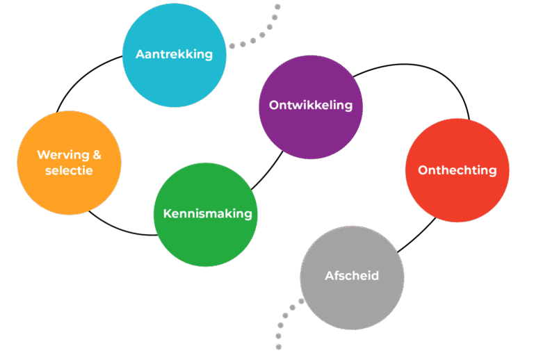 De werknemer life-cycle laat zien welke (mentale) stadia een werknemer doorloopt in zijn contact met een werkgever, van eerste kennismaking tot na vertrek bij de organisatie. Met behulp van drijfveren kun je in elk stadium een beter contact maken met de werknemer en mens en werk beter op elkaar afstemmen.