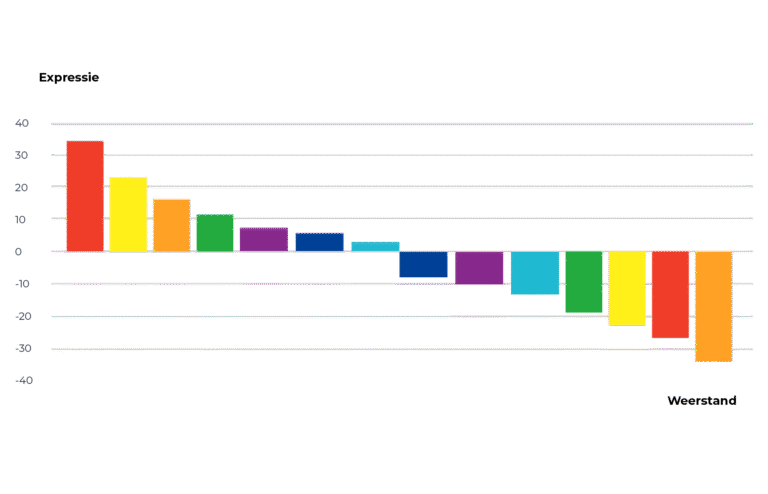 Het teamprofiel laat zien welke drijfveren het team laten schitteren (expressie) en wat remmend werkt op de energie (weerstand). Het maakt duidelijk waar de kracht van het team zit en hoe je die kunt bijsturen.